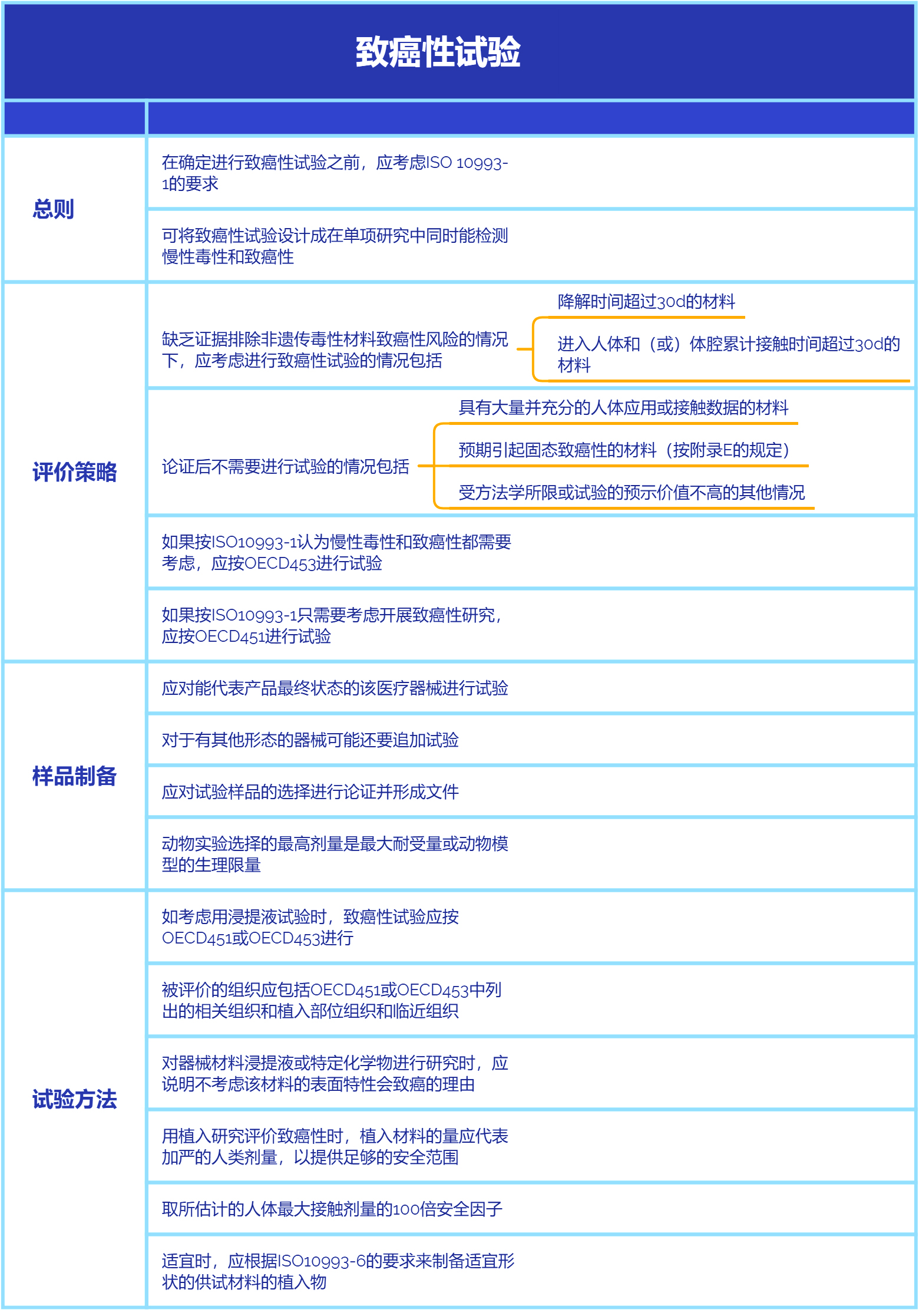 致癌性试验是在实验动物周期寿命的主要阶段,医疗器械、材料和(或)浸提液多次接触实验动物以测定其致癌潜能的试验。主要内容如下: