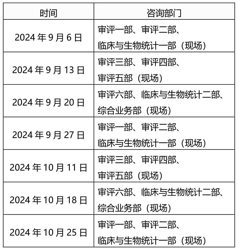 参考资料:关于2024年9月~10月医疗器械注册受理前技术问题咨询工作安排的通告(2024年第25号) (cmde.org.cn)