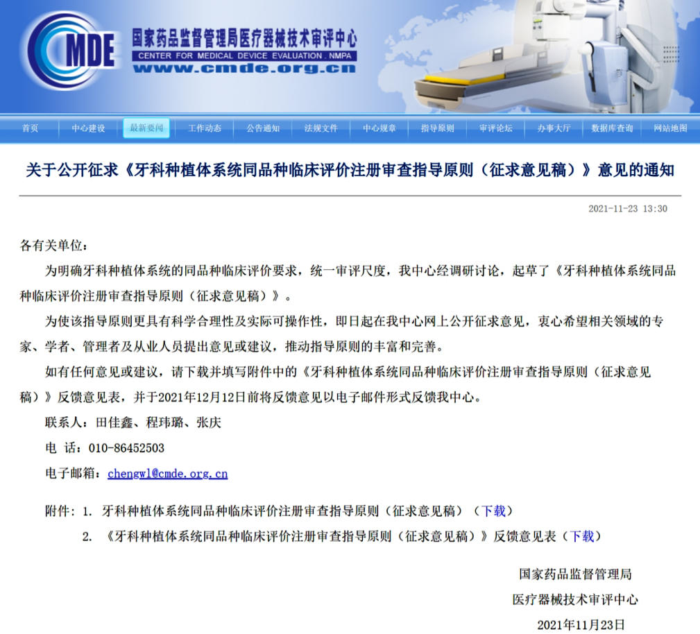 本指导原则适用于经外科手术后保留于口腔内的牙科种植体系统(不适用于定制式种植体系统)采用通过同品种医疗器械临床使用数据进行临床评价。本指导原则涉及产品所用材料为符合外科植入物用钛及钛合金。