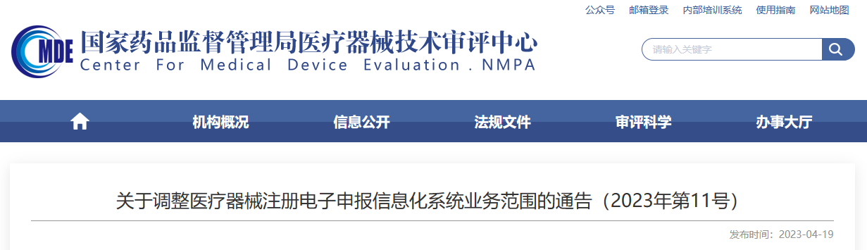 转载来源:关于调整医疗器械注册电子申报信息化系统业务范围的通告(2023年第11号) (cmde.org.cn)