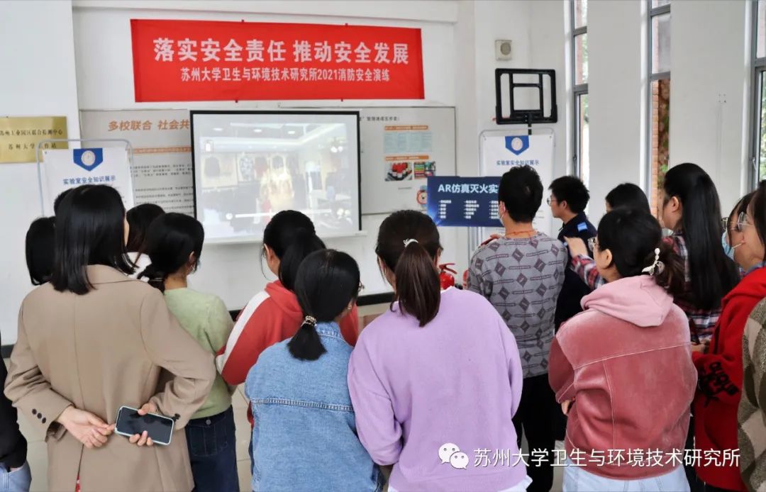 为强化安全意识,提高研究所员工应对各个场景的灭火自救能力,苏州大学卫生与环境技术研究所于2021年11月2日举办了“AR消防安全应急演练”活动,研究所全体员工积极有序的来到现场参与。