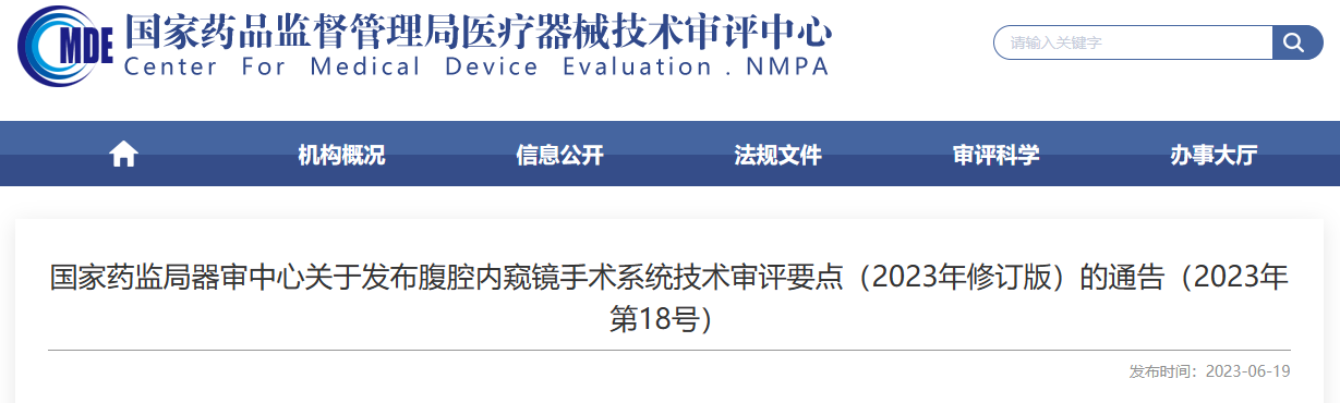 为进一步规范腹腔内窥镜手术系统的管理,国家药监局器审中心组织修订了《腹腔内窥镜手术系统技术审评要点》(2023年修订版),现予发布。