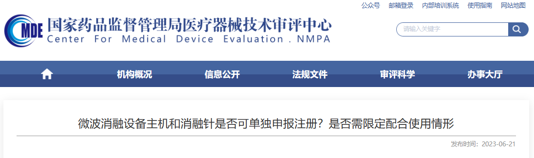 CMDE关于微波消融设备主机和消融针是否可单独申报注册?是否需限定配合使用情形问题的回答