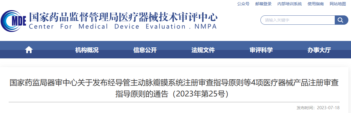 摘要:CMDE发布经导管主动脉瓣膜系统注册审查指导原则等4项医疗器械产品注册审查指导原则