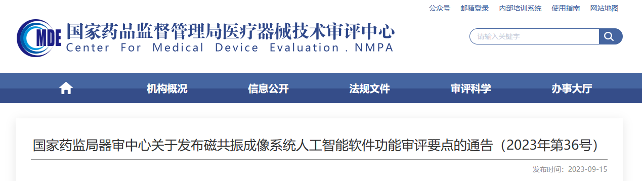 转载来源:国家药监局器审中心关于发布磁共振成像系统人工智能软件功能审评要点的通告(2023年第36号) (cmde.org.cn)