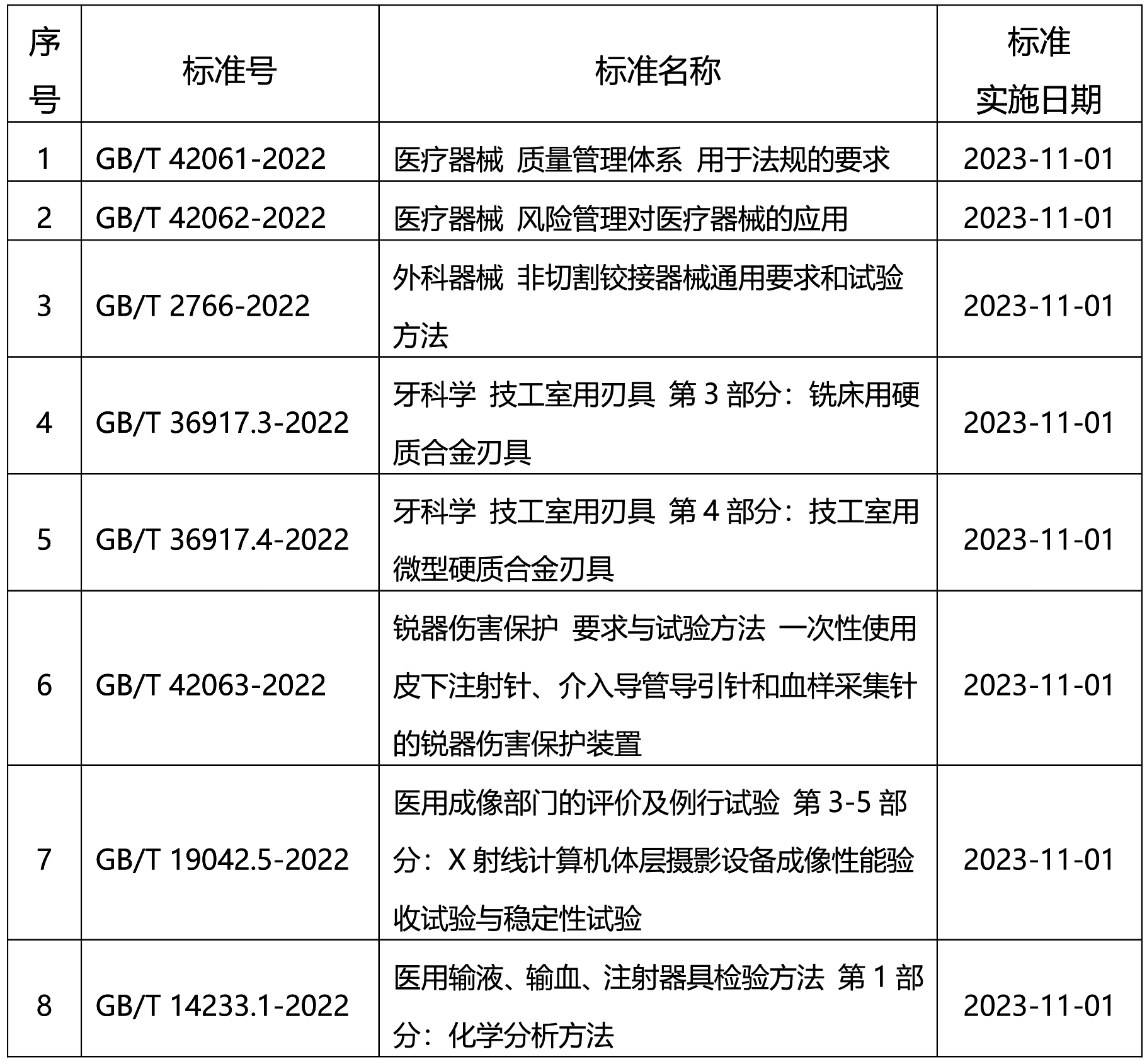 多项医疗器械相关标准将于2023年11月1日正式实施。