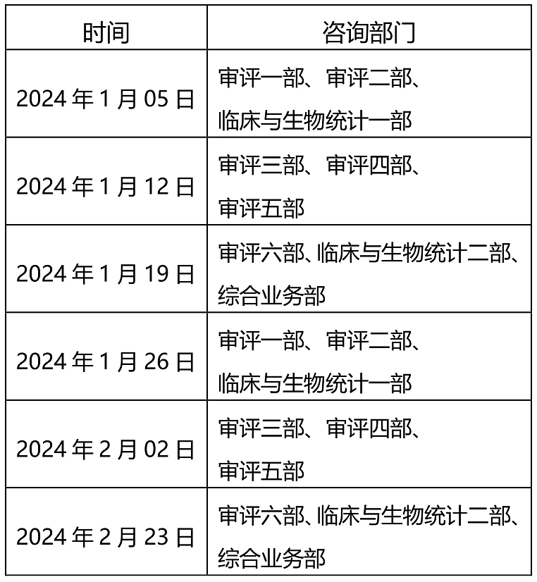 参考资料:关于2024年1月~2月医疗器械注册受理前技术问题咨询工作安排的通告(2023年第40号) (cmde.org.cn)