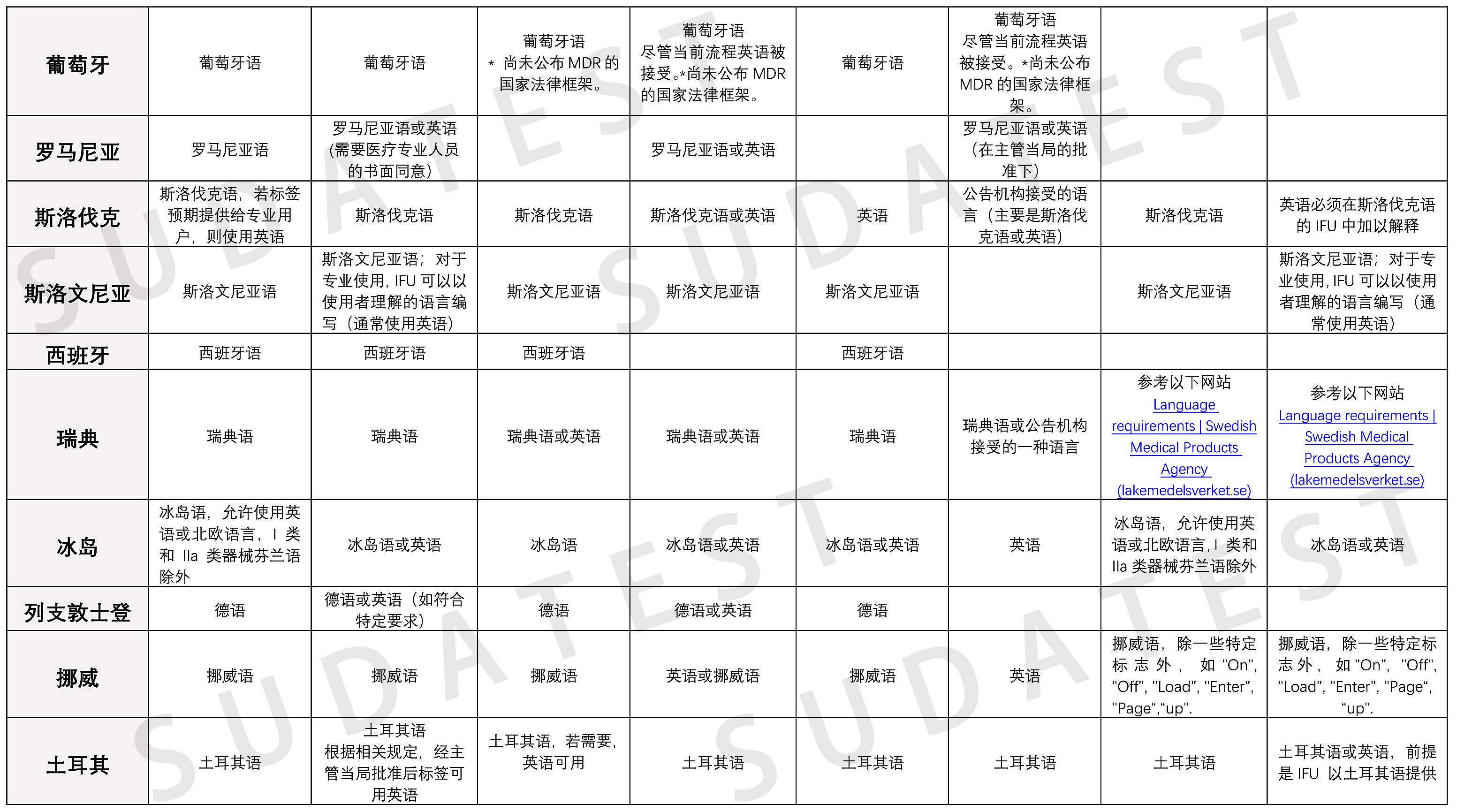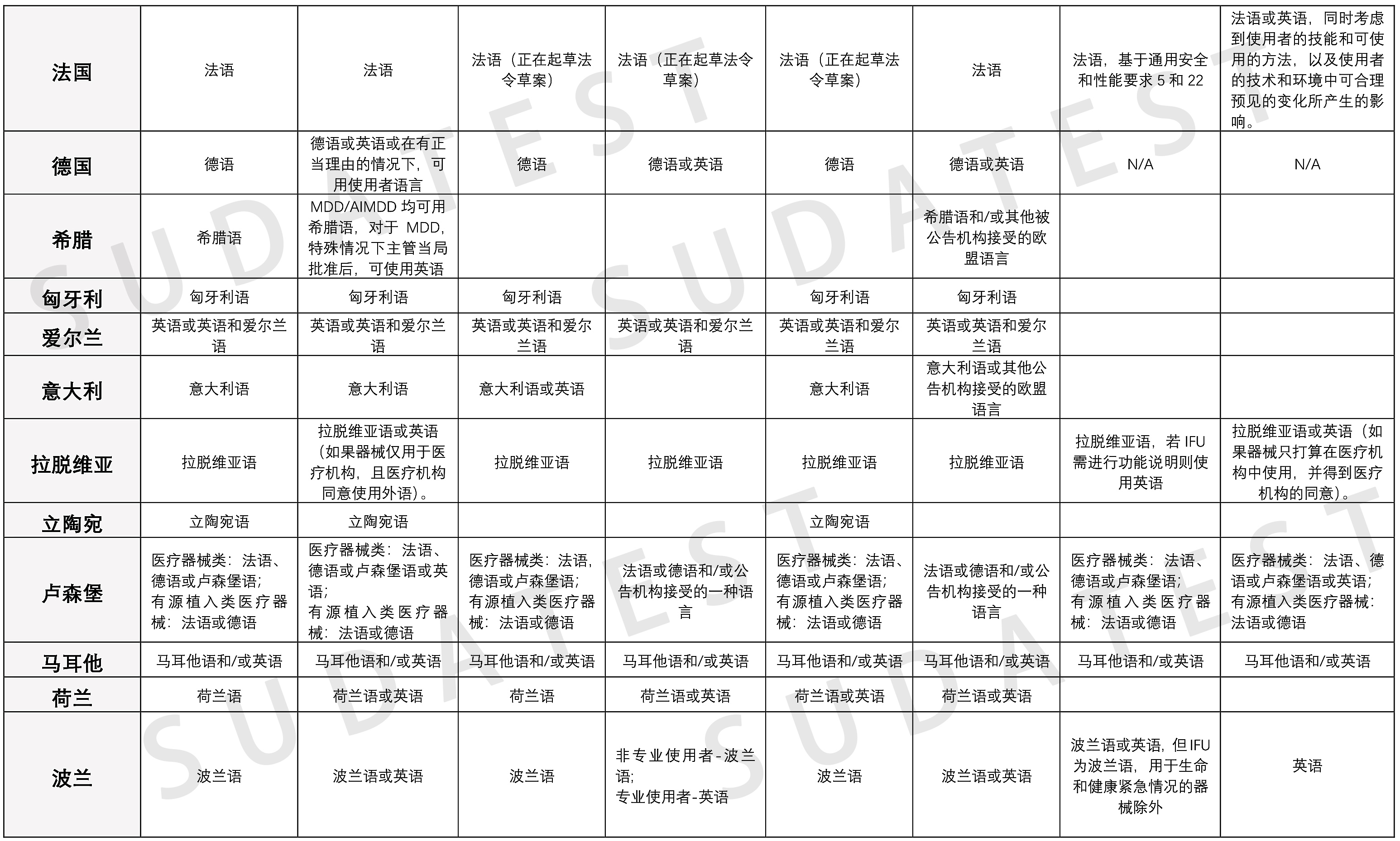 关于下表欧盟各成员国语言要求的相关法律条款,感兴趣的可戳链接:md_sector_lang-req-table-mdr.pdf (europa.eu)