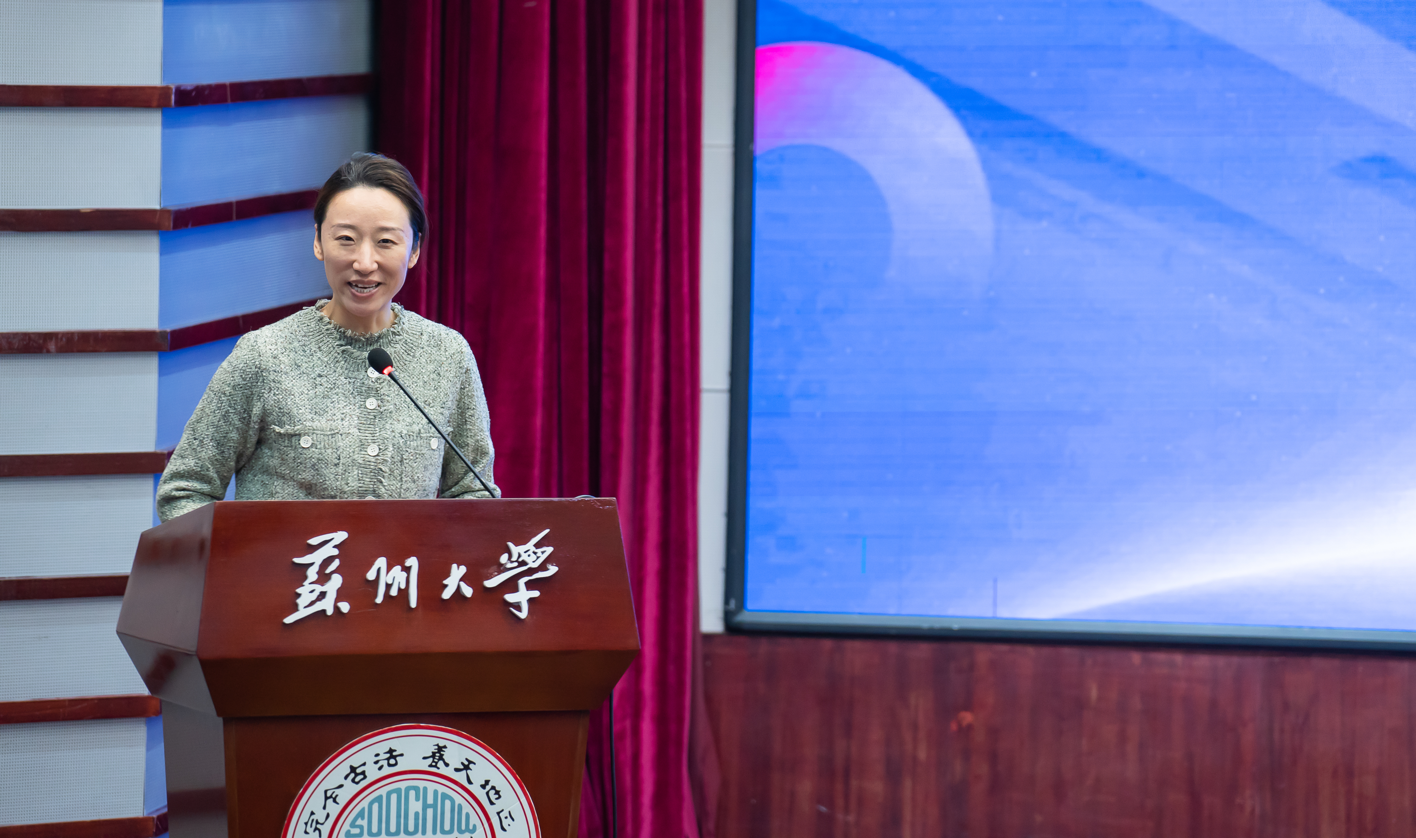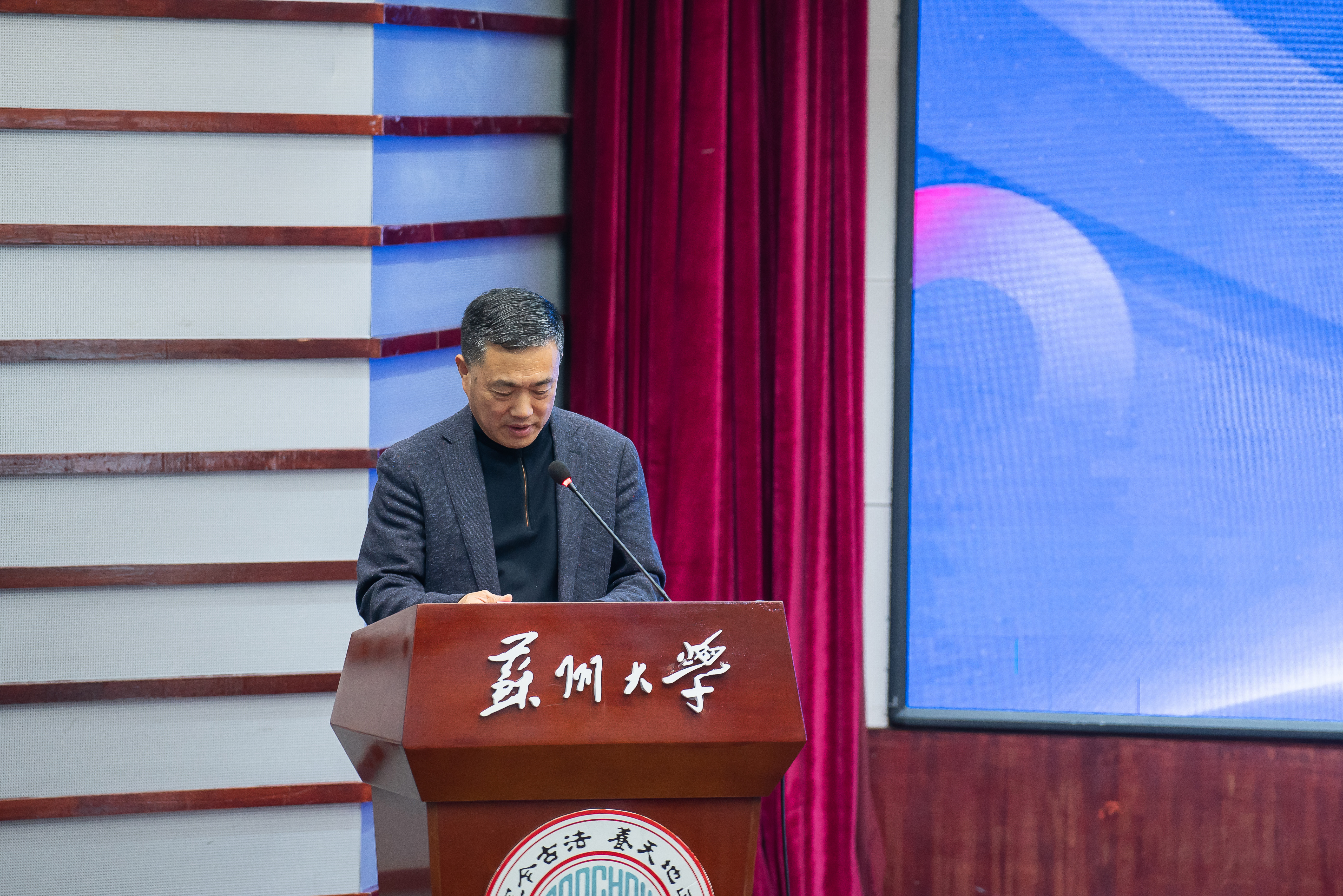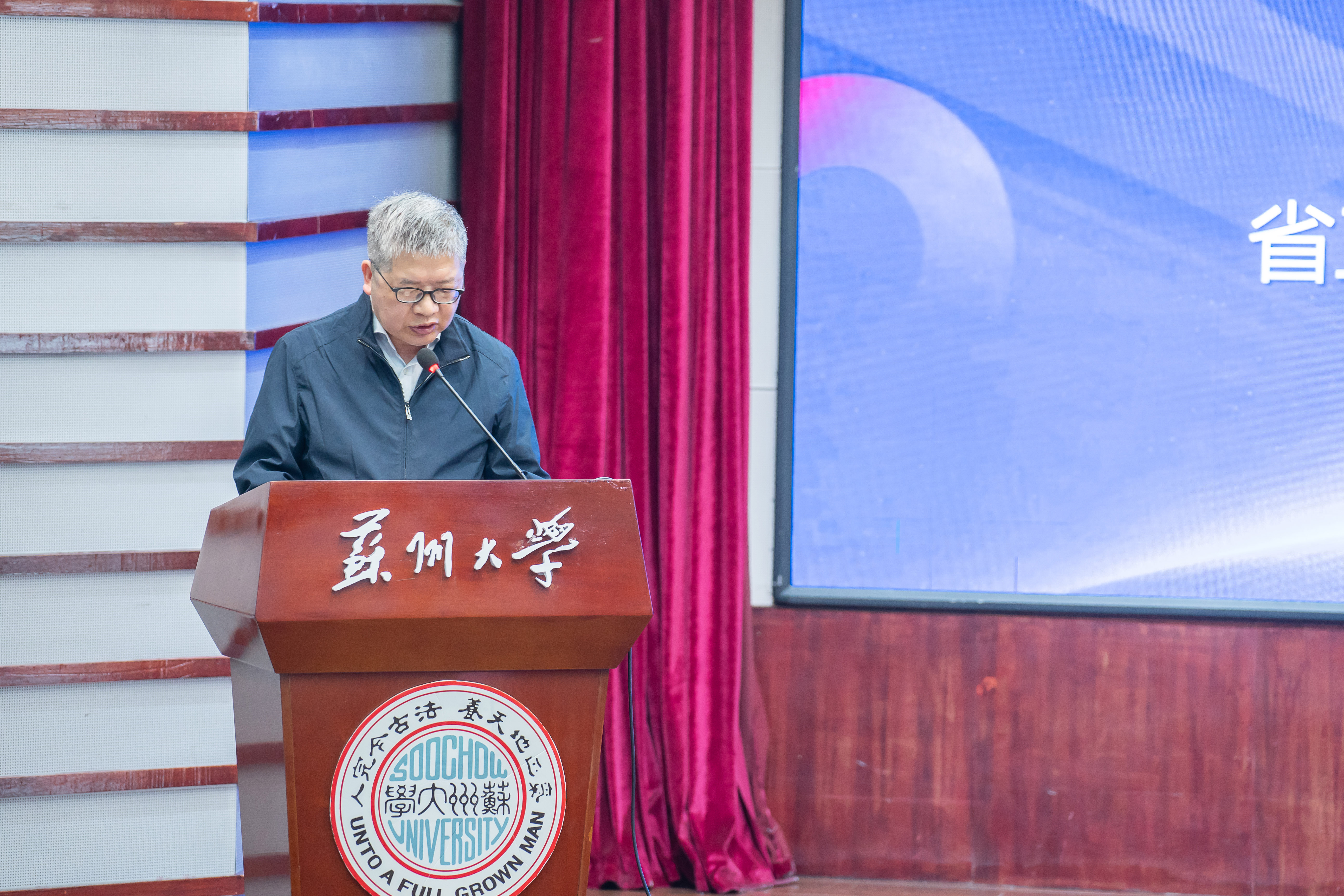 苏州大学党委常委、副校长洪晔在致辞中表示校企协同创新是提升产业竞争力的关键途径,苏州大学能够充分发挥科研实力和人才优势,为中小企业提供更多更好的技术支持和服务,共同开展技术研发、人才培养等创新活动,推动产业链上下游的深度融合。