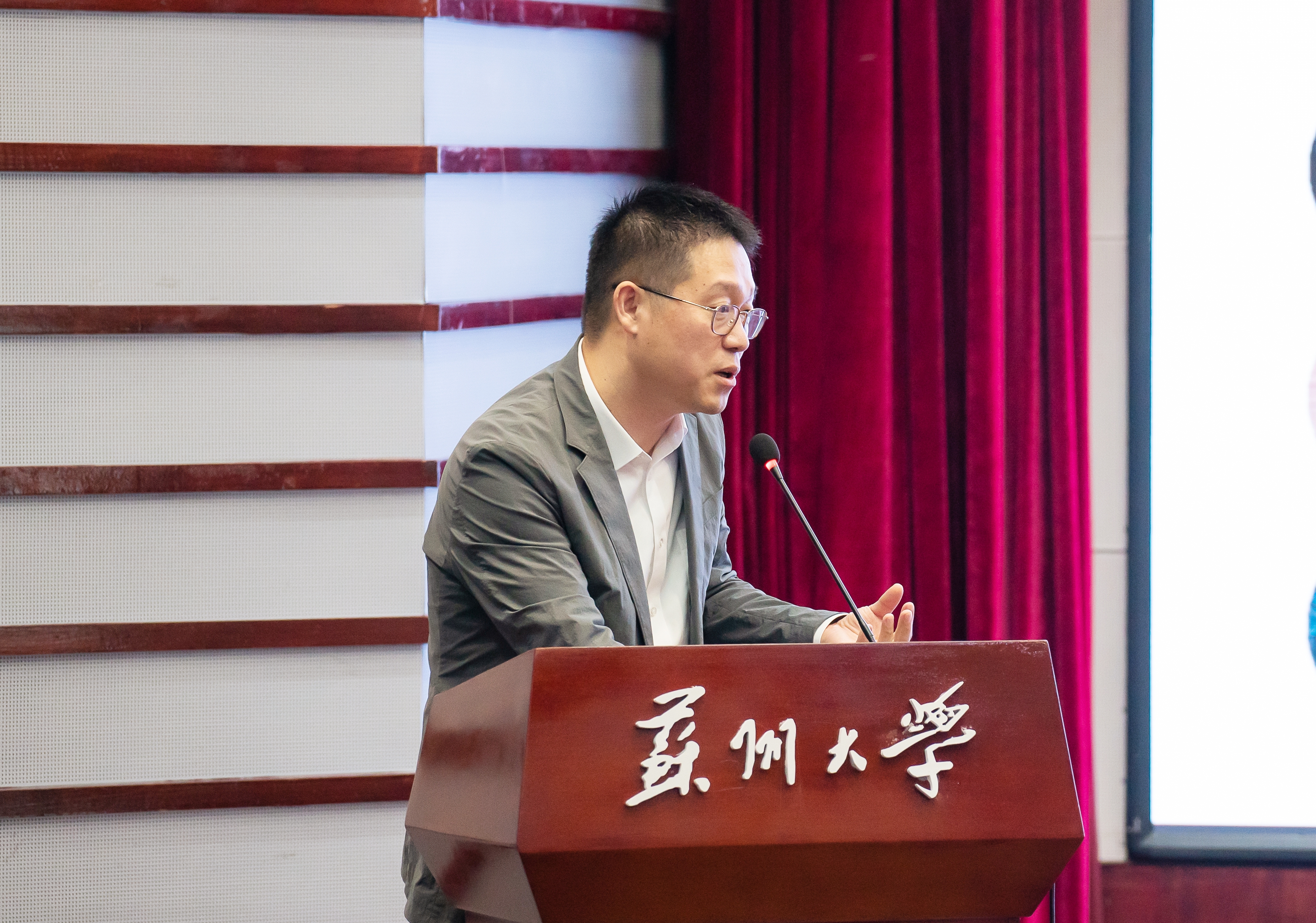 省科技资源统筹服务中心资源管理部主任段伦超做了科创相关政策解读。苏州大学产业技术研究院常务副院长糜志雄做苏州大学校企合作委员会政策发布。苏州大学教授、江苏省数据智能与先进计算重点实验室副主任、中国科协青年人才托举工程计划入选者李俊涛做大模型带来的机会与挑战专题分享。苏州大学机电工程学院副院长、二级教授、苏州市机械工程学会理事长王传洋做苏州市智能制造装备产业发展现状及展望专题分享。