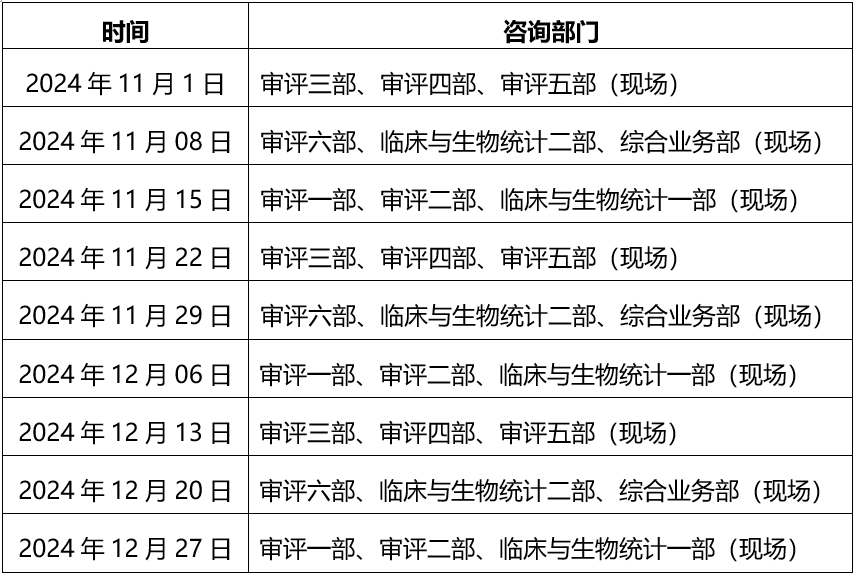 参考资料:关于2024年11月~12月医疗器械注册受理前技术问题咨询工作安排的通告(2024年第28号) (cmde.org.cn)
