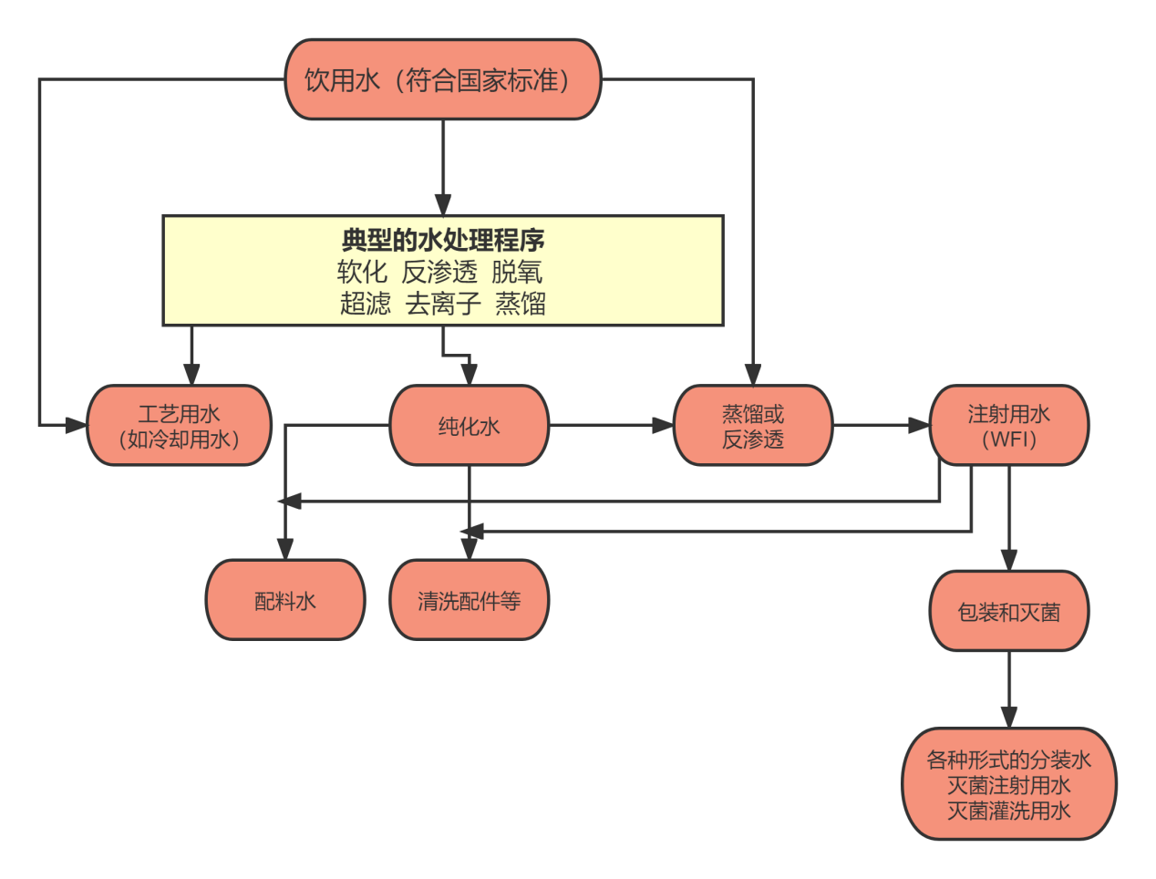 医疗器械工艺用水以饮用水为源水,主要包括以下几种: