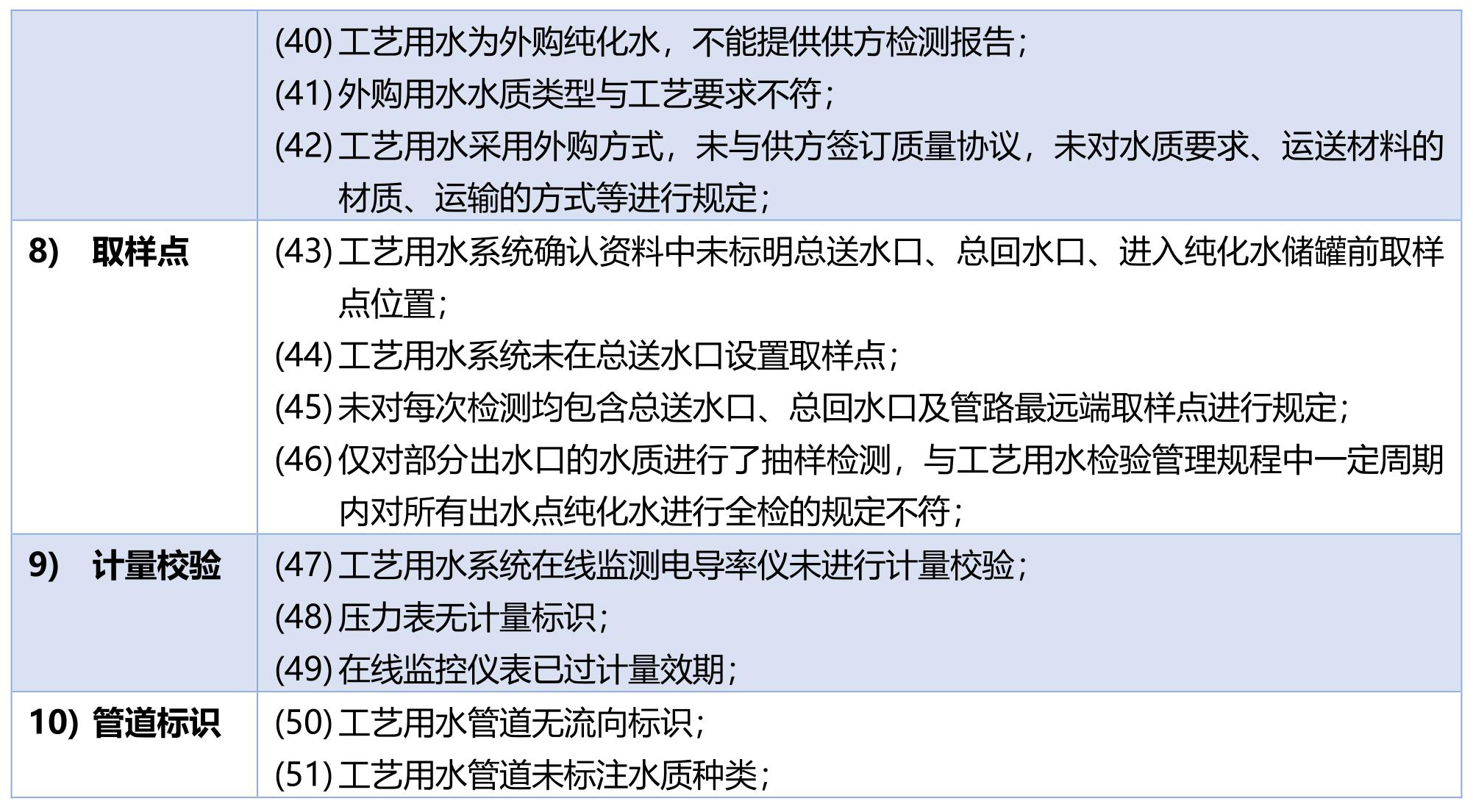 《中华人民共和国药典》(2020年版)(以下简称“《中国药典》”)、《分析实验室用水规格和试验方法》(GB/T 6682—2008),以及《体外诊断试剂用纯化水》(YY/T 1244—2014)是当前医疗行业工艺用水质量标准的主要参考依据,也是监管人员在医疗器械GMP检查过程中对于工艺用水水质指标的主要参考依据。