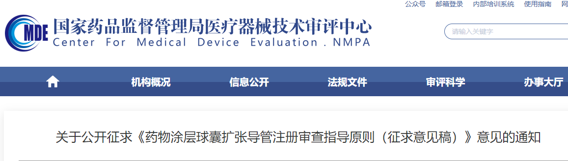 1.药物涂层球囊扩张导管注册审查指导原则(征求意见稿)(下载)