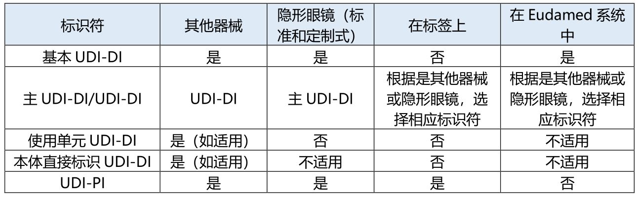 同时,对向隐形眼镜和其他器械分配UDI-DI所提供的不同器械标识符和标识级别进行比较: