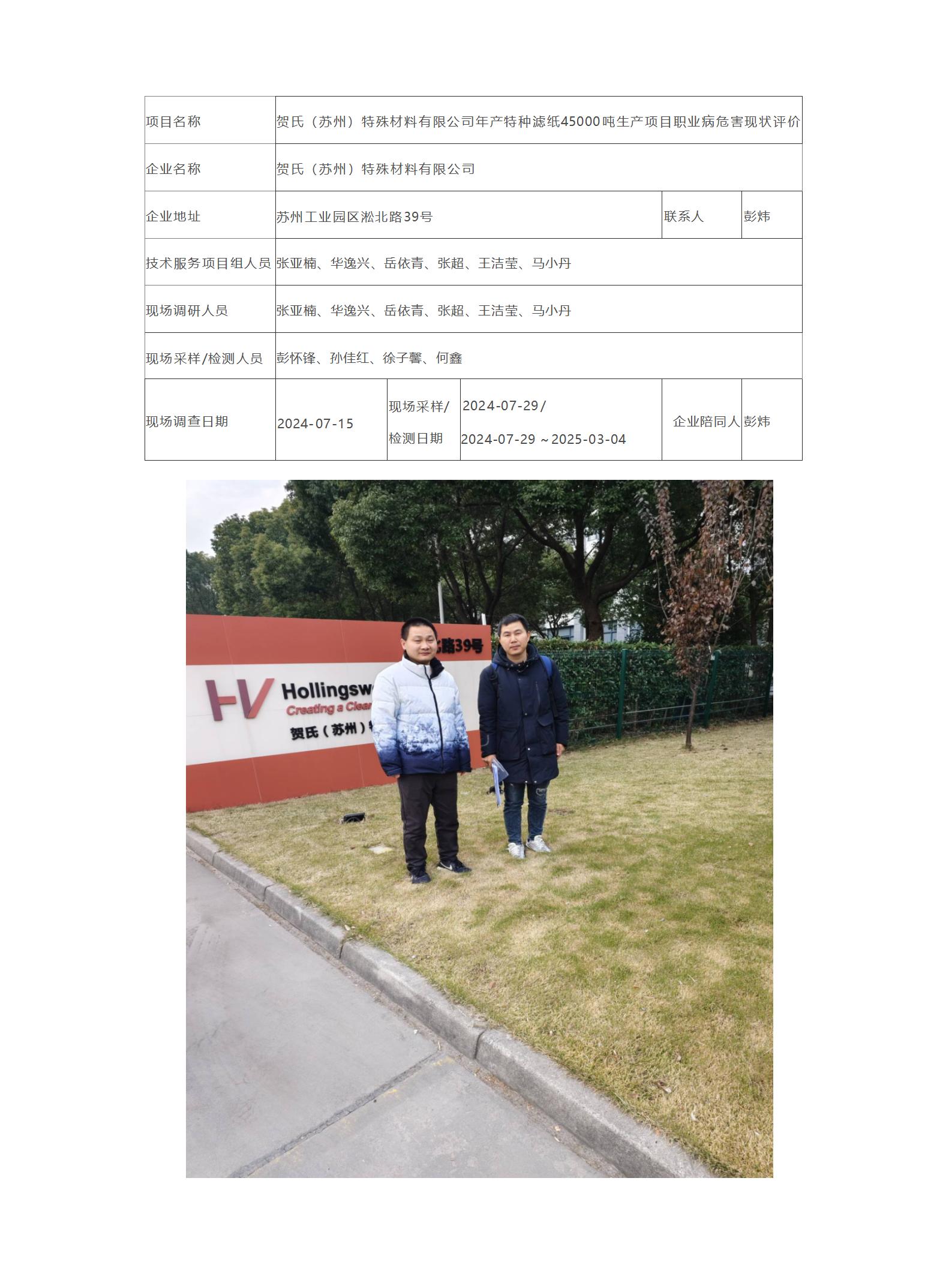 贺氏(苏州)特殊材料有限公司年产特种滤纸45000吨生产项目职业病危害现状评价