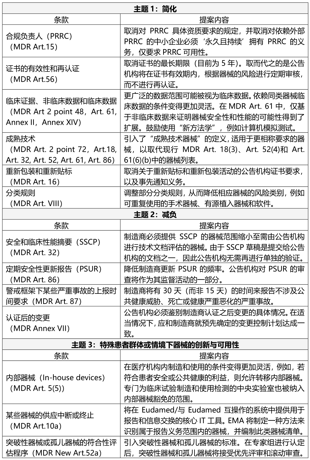 参考资料:Proposal for a REGULATION OF THE EUROPEAN PARLIAMENT AND OF THE COUNCIL amending Regulations (EU) 2017/745 and (EU) 2017/746 as regards simplifying and reducing the burden of the rules on medical devices and in vitro diagnostic medical devices, and amending Regulation (EU) 2022/123 as regards the support of the European Medicines Agency for the expert panels on medical devices and Regulation (EU) 2024/1689 as regards the list of Union harmonisation legislation referred to in its Annex I