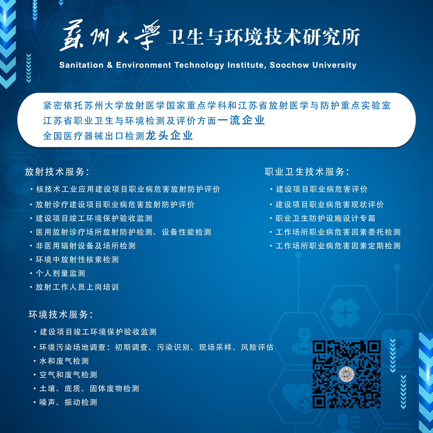 苏州大学卫生与环境技术研究所将在卫健委专家领导的指导下积极进行相应的调整和提高,为广大客户朋友提供更为优质的服务。